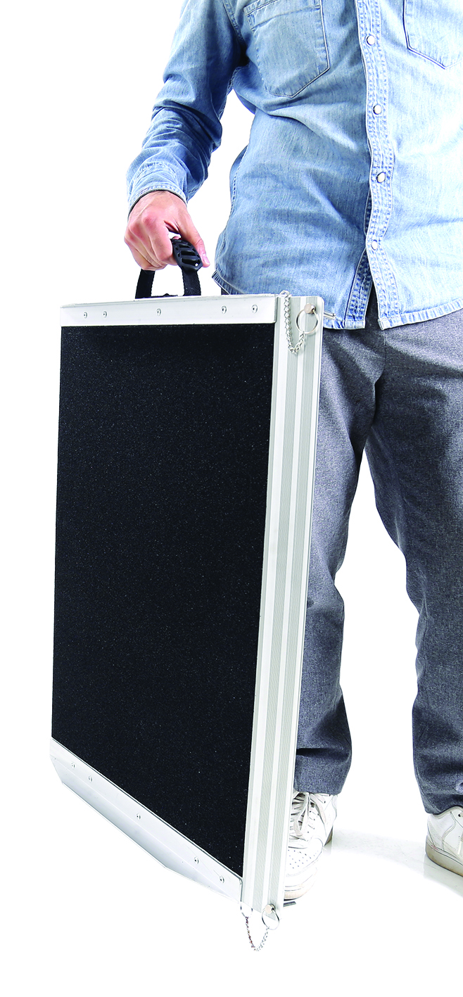 Portable and folding mobile platforms are a secure and durable solution, as well as being easy to use and to transport, and can be used to deal easily with steps or height differences.