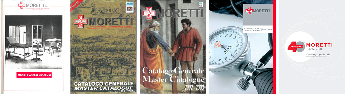 All’inizio degli anni ’90, nascono cataloghi dedicati alle singole linee, come L.E.M. (Linea Elettromedicali Moretti S.p.A.) e CHIMO (Chirurgia Moretti S.p.A.), segnando un primo passo verso una strutturazione più chiara dell’offerta.
